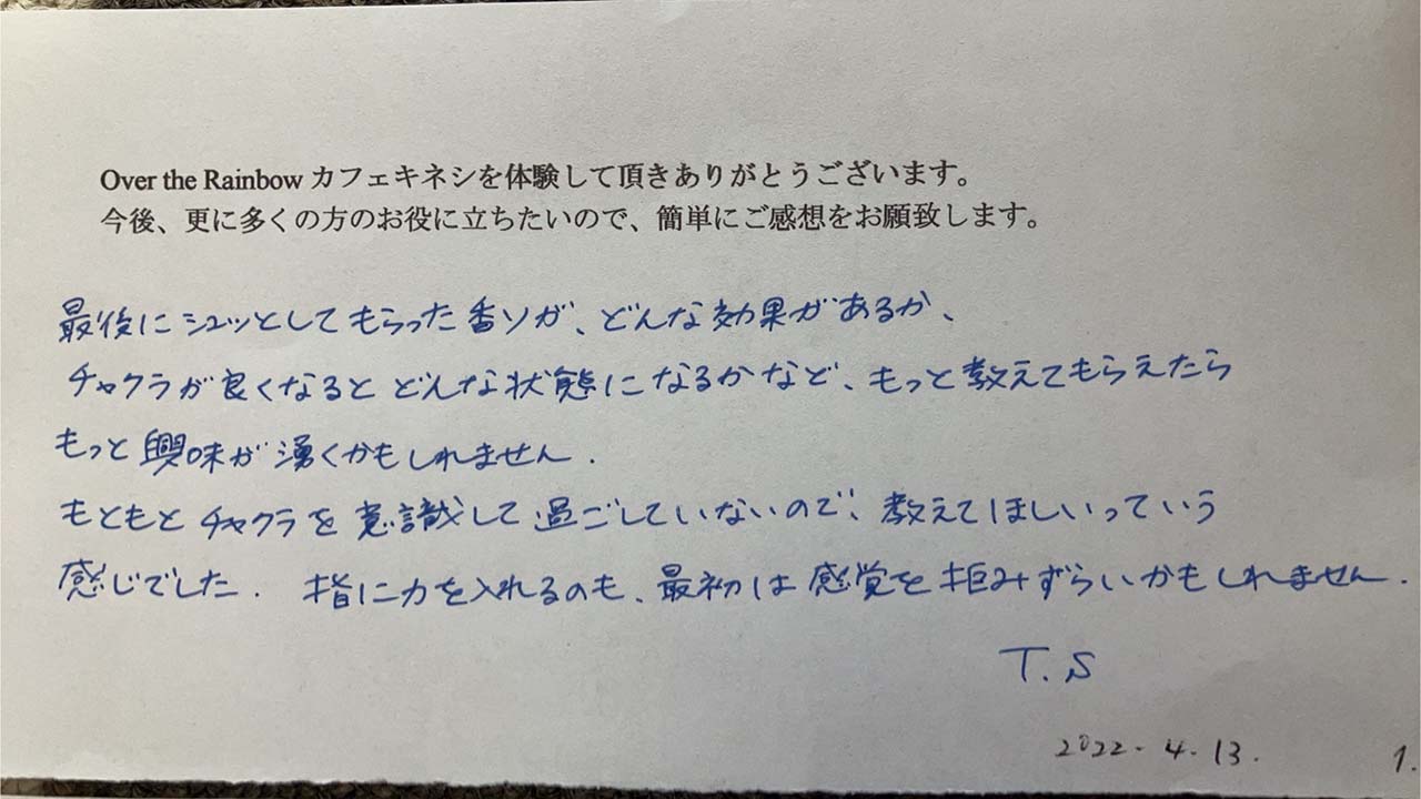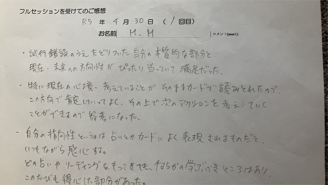 この12ステップスピリチュアルライフコーチセッションは、 私が人生で何をやりたいかを、とても明解に示してくれました。 私がこれまでどうしてこんな経験をしたか、それらの意味が分かり、そして、 全ての経験が、今の私に繋がっているのを実感できました。