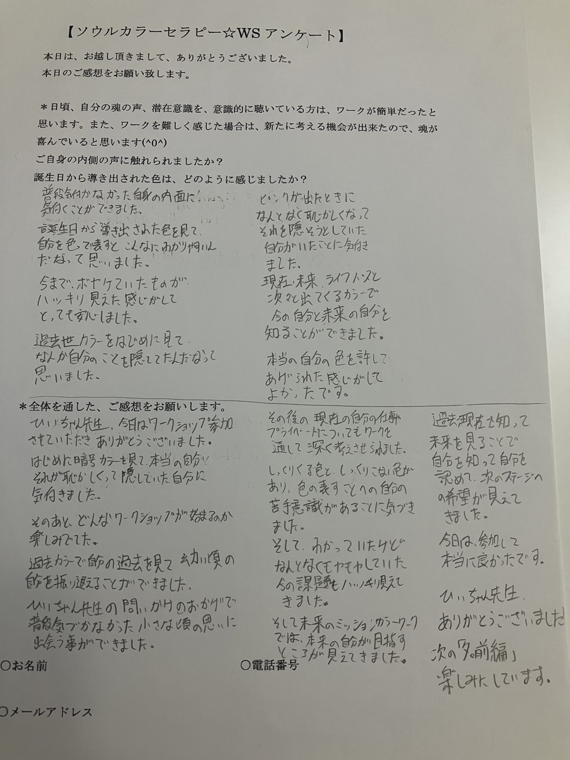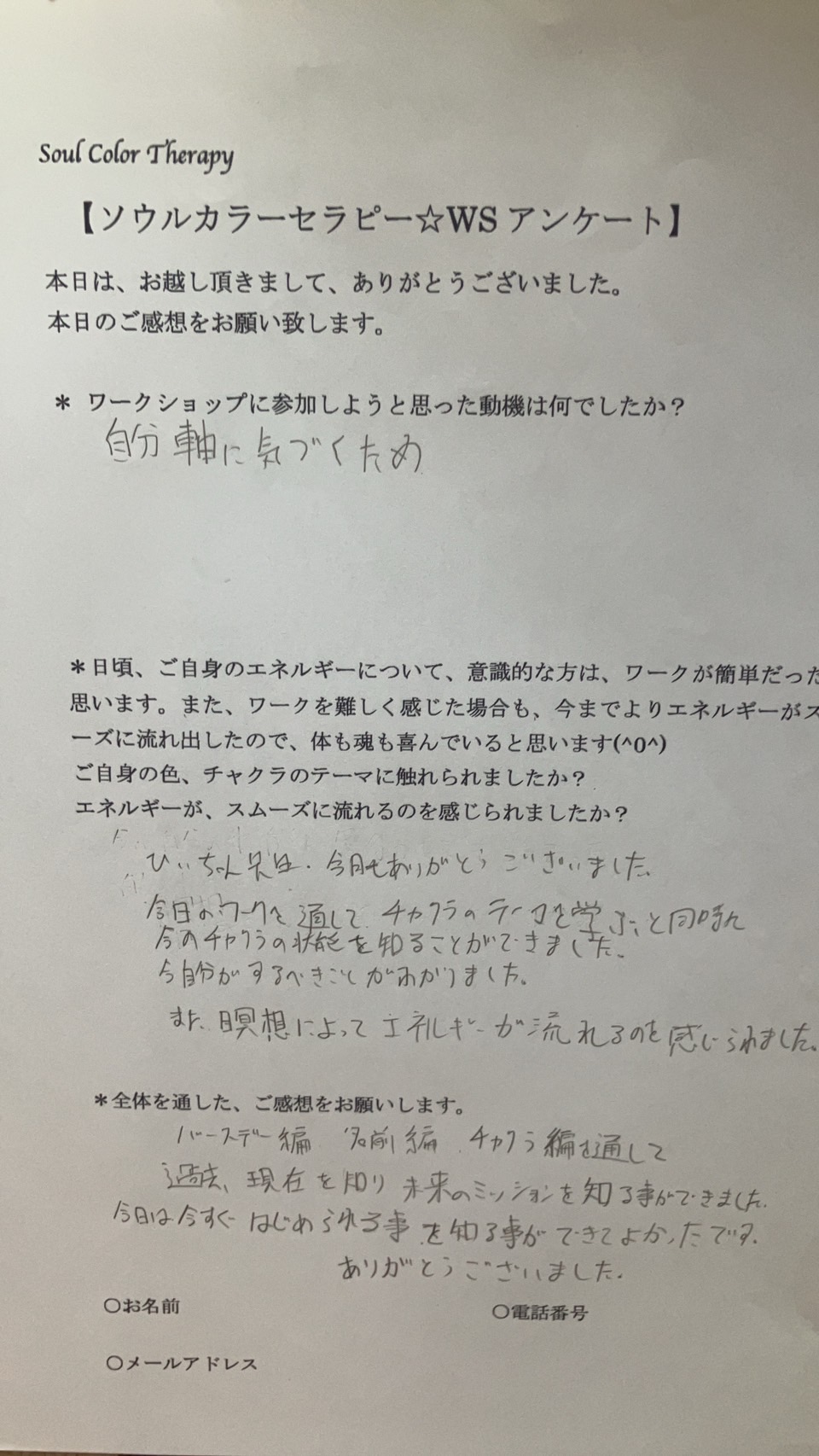 - ソウルカラーセラピー☆セラピスト養成講座受講